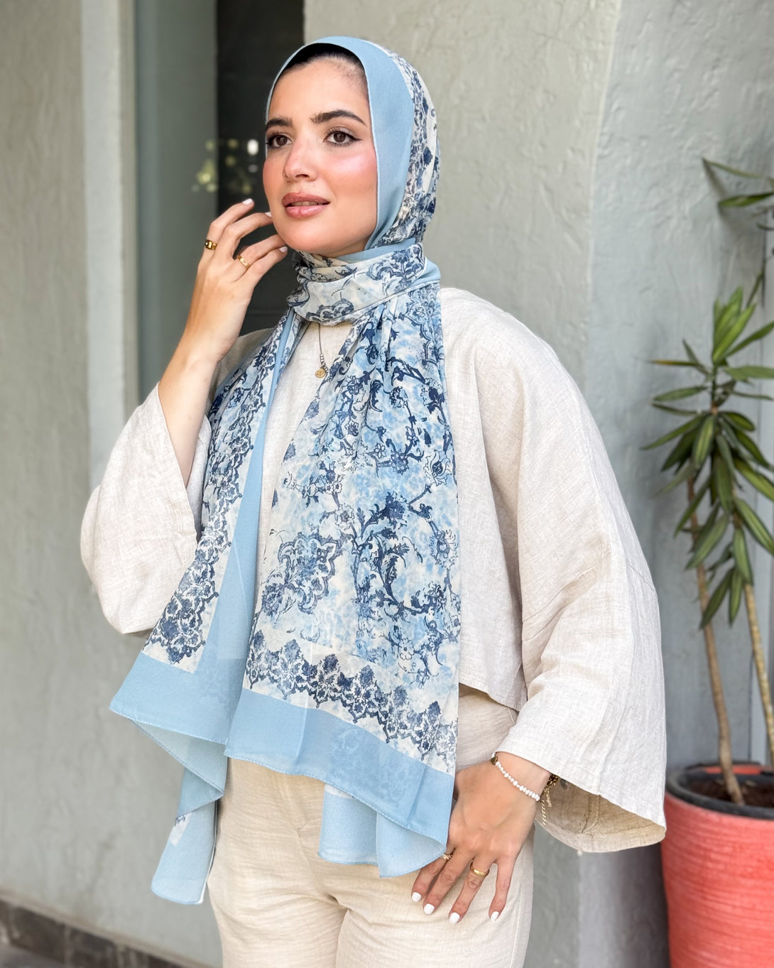 Printed Chiffon scarves showcase a variety of beautiful prints, ranging from floral to geometric designs. The colors are rich and vibrant. These scarves are perfect for adding a pop of color and pattern to any outfit, with designs that suit both casual