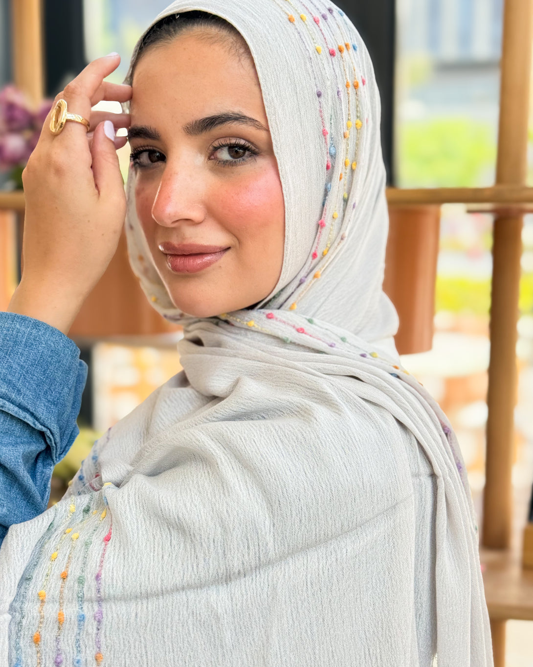 Elevate your everyday look with the Twist of Lines Hijab, featuring delicate hand-made stitched lines that add a modern, chic touch. Designed in a generous size of 190 cm length × 68 cm width, it offers versatile styling options and full coverage.